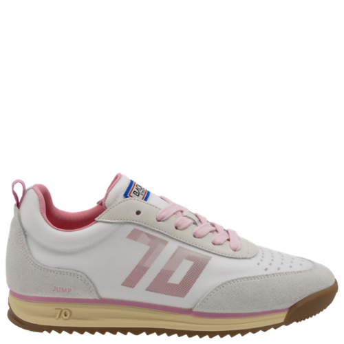 Enter an era of transparency in Jump, a running-style vintage sneaker illuminated with floating effects and unexpected surfaces. Frosted light radiates through delicate overlays in a retro-futuristic aesthetic that is neither artificial nor entirely natural. Romantic pastels and abstract color block designs are both soft and discreet, white blending culture and creative impulse for a style that brings conceptual energy into the light.