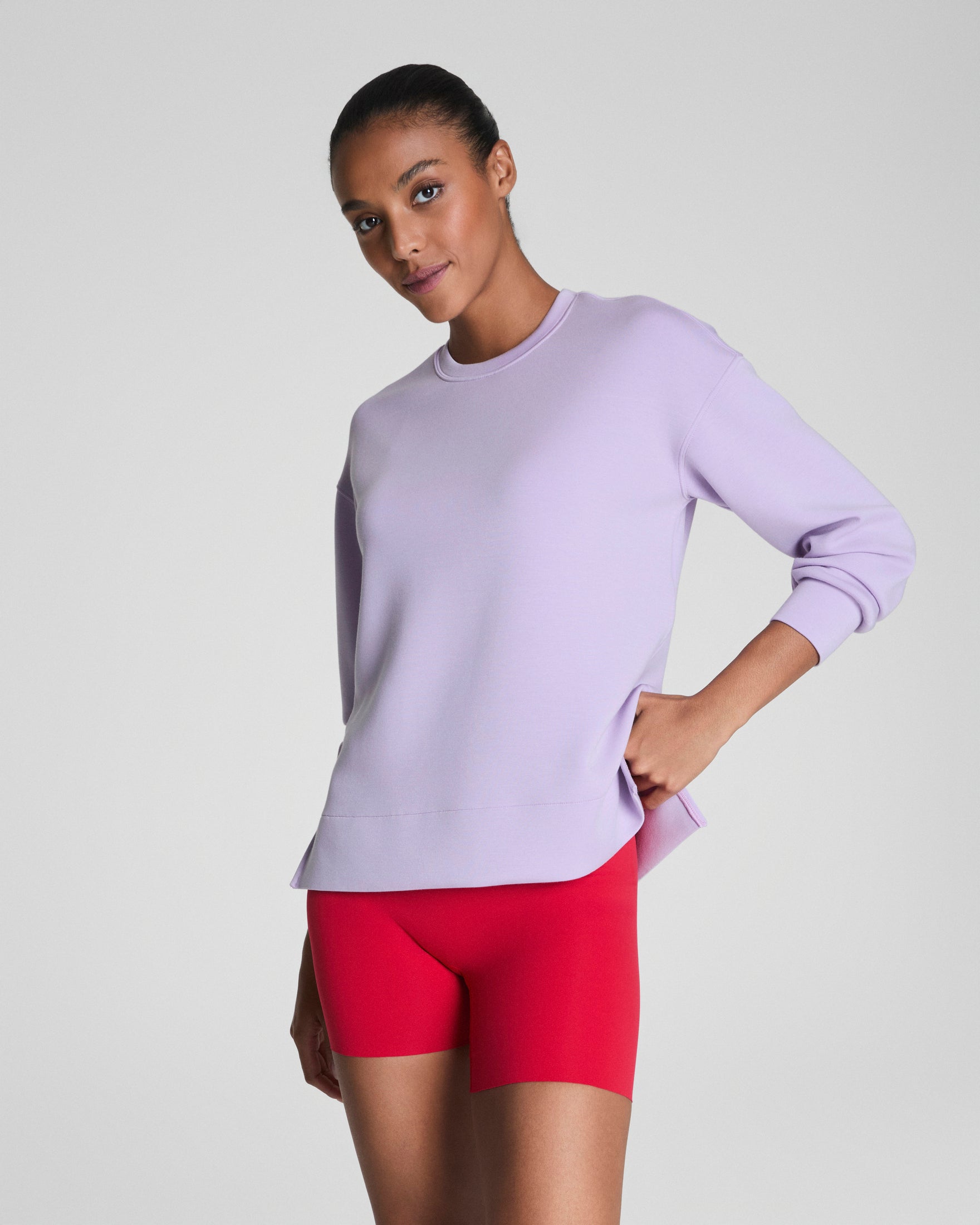 The SPANX AirEssentials® Crewneck Tunic is made with the ultra-drapey spacer fabric that's breathable, light-as-air, and oh-so-soft. This versatile long layer features a relaxed fit with 4-way stretch for total comfort, a classic crewneck, and hits below the hip for extra booty coverage. Sleek, stylish, and comfortable, this throw-on-and-go top will take you anywhere and everywhere.