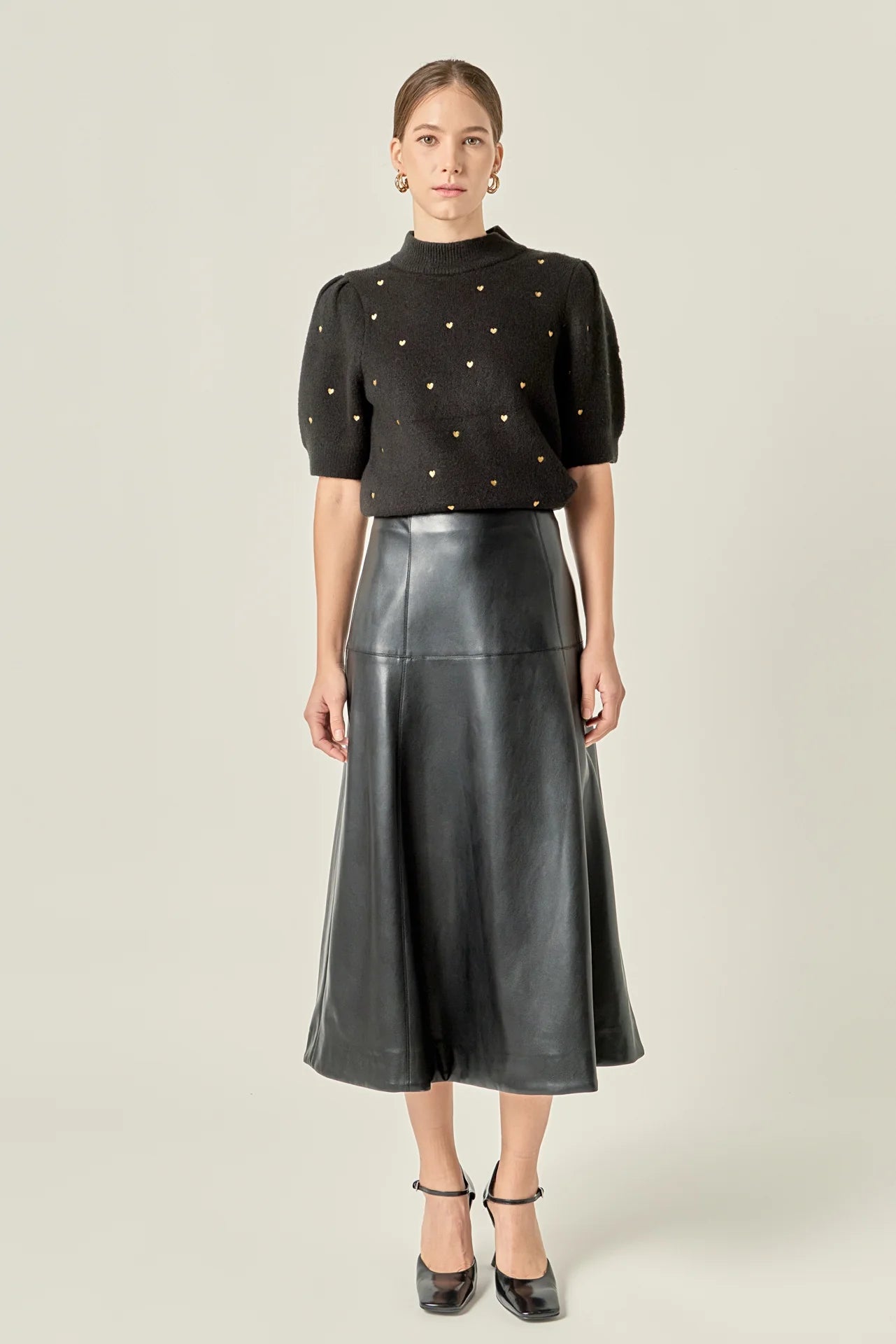 Fall in love with the details. The Heart Embroidered Puff Sleeve Knit Top brings a playful yet polished touch to your everyday look. Designed with soft knit fabric, subtle heart embroidery, and feminine puff sleeves, this top perfectly balances comfort and charm. The ribbed trim adds structure to the silhouette, making it easy to pair with jeans, skirts, or tailored pants. Whether you're dressing it up for a date or keeping it casual, this top is an instant mood-lifter.
