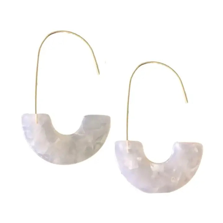 These earrings feature a half moon shaped resin tortoise shell mold affixed with an ultra long "thread through" post. 2.2 inches long and 1.5 inches wide (half moon bead - end to end). "Slip on" thread style hoop earring with an ultra long post and spotty tortoise shell resin "half moon" bead.